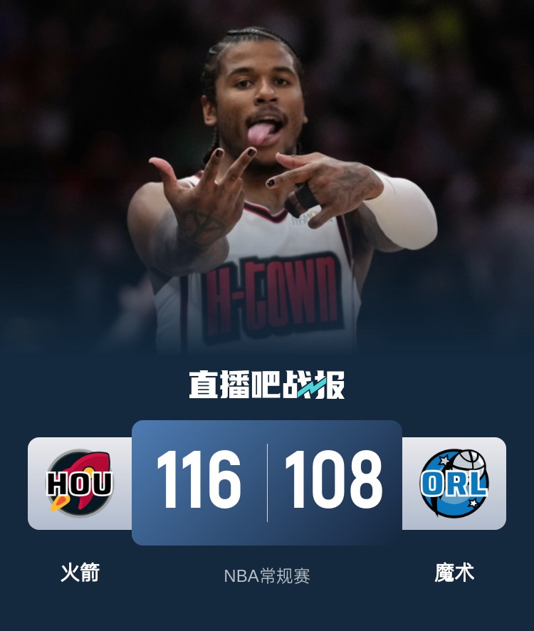 火箭(45-25):杰伦-格林26分7板2助、申京22分12板4助、范弗里特19分6板3助、伊森16分9板4助5断、狄龙15分3板3助、史密斯13分3板2助2断2帽、亚当斯3分6板、杰夫-格林2分。