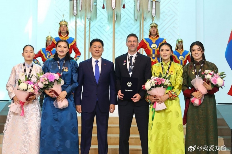 另据蒙古国媒体报道,为表彰这支创造历史的队伍,蒙古国总理贡布扎布-赞丹沙塔尔宣布向蒙古三人女篮颁发5亿图格里克(约合100万元人民币)奖金。
