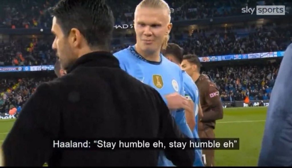 去年9月,在曼城2-2战平阿森纳的激烈对决后,摄像机捕捉到哈兰德对阿尔特塔说“保持谦逊”。比赛中,他还对阿森纳小将斯凯利大喊“你他X是谁?”,引发了一场争端。
