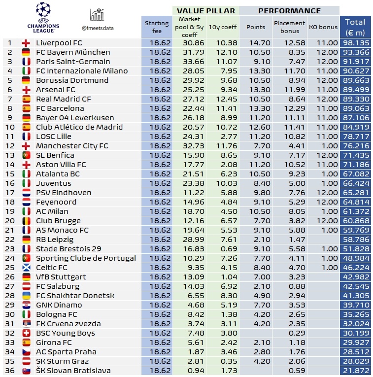 该媒体表示,8支在欧冠淘汰赛附加赛中获胜的球队额外获得了1100万欧元的收入。