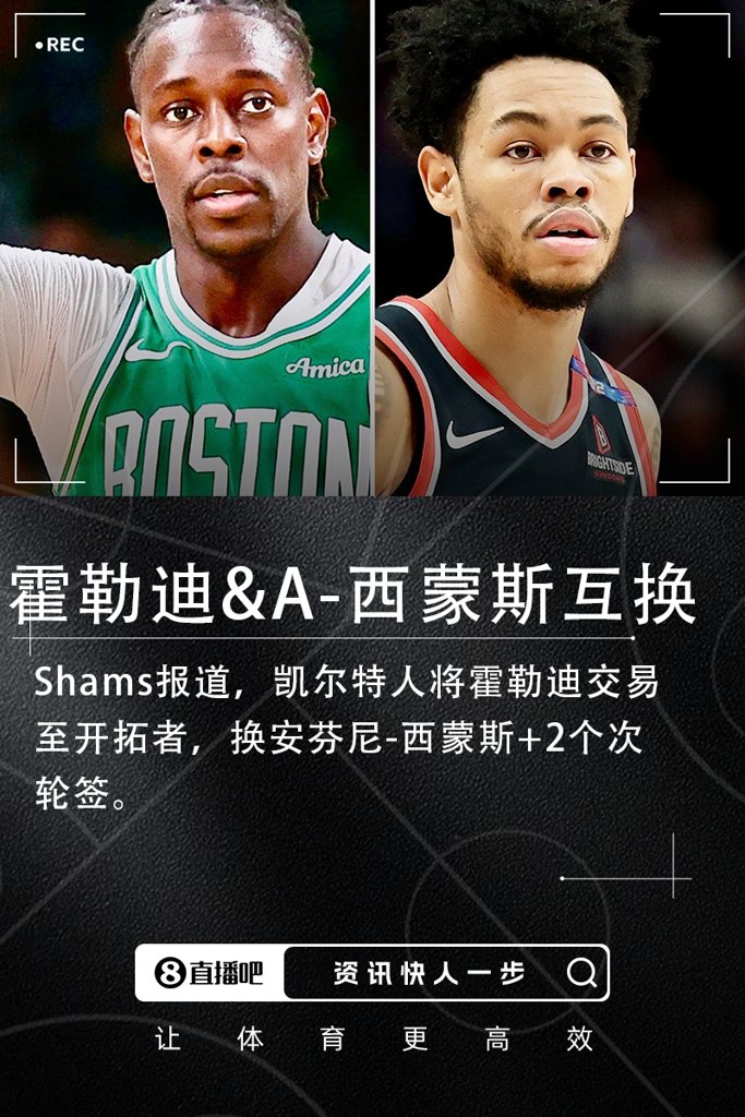 06月24日讯 据名记Shams报道,凯尔特人将朱-霍勒迪交易至开拓者,换安芬尼-西蒙斯+2个次轮签。