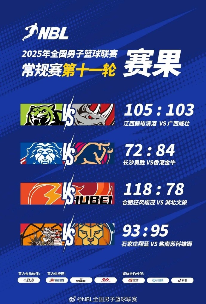 【战报】2025年NBL常规赛第十一轮四场同赛。