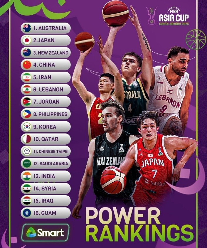 7月26日讯 2025年男篮亚洲杯将于8月5日至17日在沙特进行,FIBA官网公布亚洲杯首期实力榜。