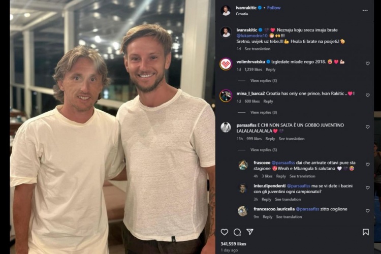 拉基蒂奇社媒祝贺莫德里奇加盟米兰,他用一首支持米兰的歌曲搭配两人的合照,但这首歌曲的内容包含对尤文的侮辱,其中“Chi non salta e un gobbo Juventino”意思为“谁不跳谁就是尤文球迷”, gobbo意为驼背,是侮辱尤文球迷的词汇。