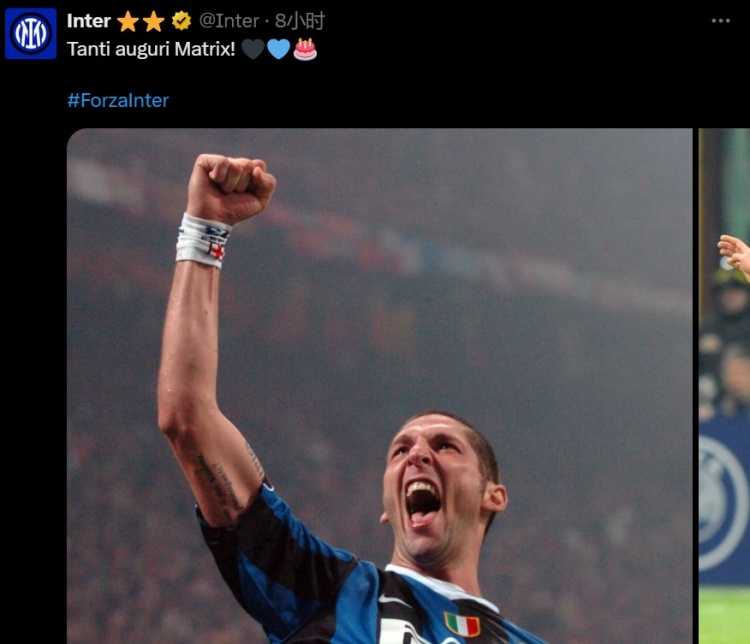 国米官方发文,祝贺名宿马特拉齐52岁生日
